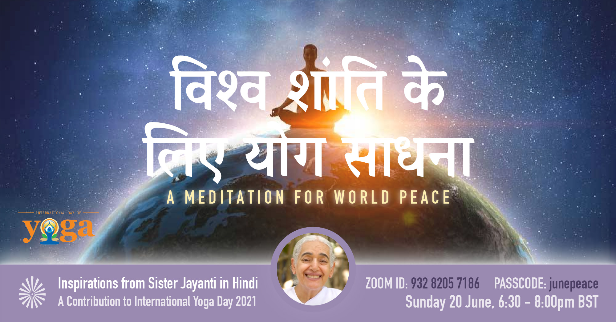 Join us for an evening of guided meditation commentaries in Hindi with visuals and devotional songs to give loving vibrations to our world family. Followed by inspirations from Sister Jayanti, European Director of Brahma Kumaris.