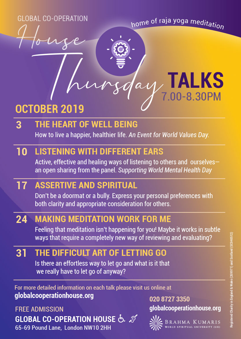 Dr Kala Mistry has been working in the field of mental health for many years and has been involved in various projects connected with spirituality and health since 1993. Kala has been a facilitator for the Janki Foundation programme 'Values in Healthcare' and over the years has reported on its various activities. She continues to be actively involved in self-development workshops and will share some meditation insights on this evening's topic of Letting Go.